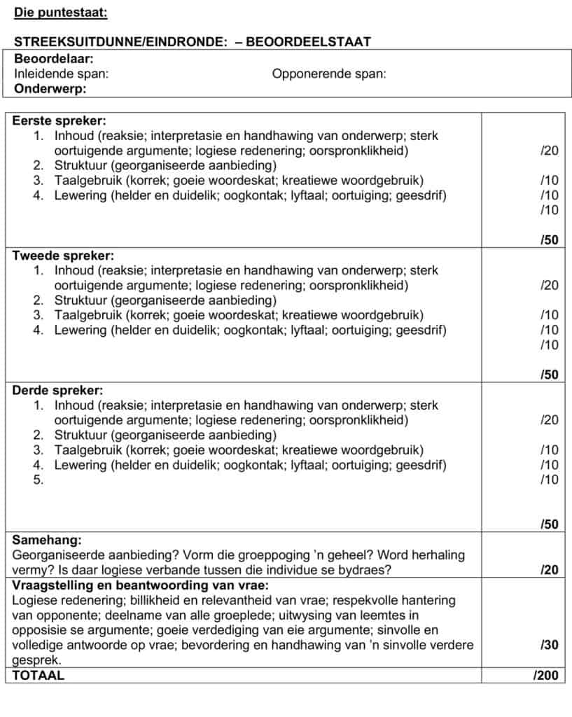 - Hierdie kompetisie is nie soortgelyk aan ander debatskompetisies nie en moet ook asseblief in dié lig gesien en gerespekteer word.