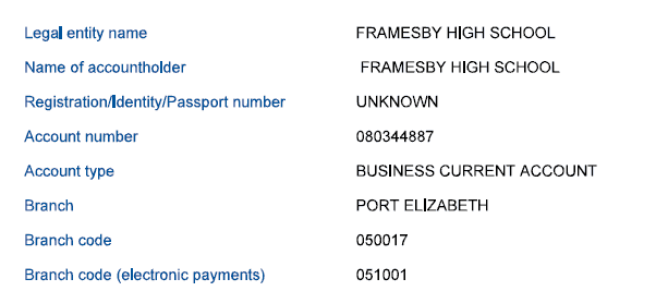 - Inskrywingsfooie beloop R250 per span. Organiseerders moet die betaling direk aan die gasheerskool maak en die bewys van betaling aanheg op die inskrywingsvorm om voort te gaan met die inskrywingsvorm.